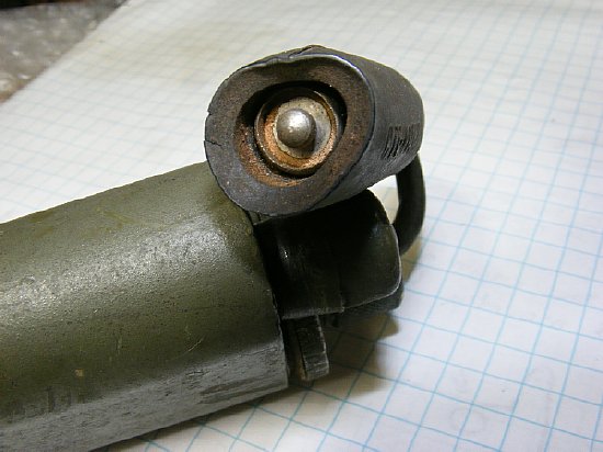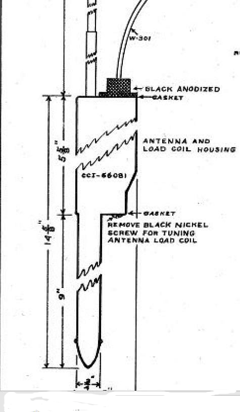 | The telescoping antenna has a rubber tip which locks the collapsed whip into the top of the coil housing. |
