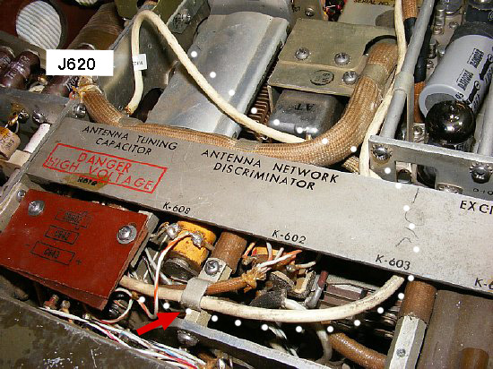 with a long lead from under the phenolic cover for CR602,C642. In the