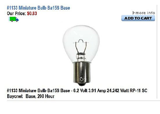 The 1133 bulb is very close to having the proper resistance and wattage. |