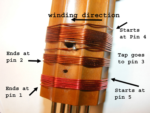 and frequency of the circuit. 3. Don't get in a big hurry with the coil project. 4. Prior to winding the coils prepare a printed page with LARGE easy to read instructions with the proposed turns and tap information for each coil. Its hard to remember the number of turns, etc., when you have 25 feet of wire stretched across the room and you are attempting to keep tension on the wire,count turns,keep from tripping over junk on your shop floor and wind and read and etc. 5. Each coil has a .25 (1/4) inch hole drilled in the side. This "wiggle" room allows the builder room to change taps on the coil. Do not get creative and try to use a smaller drill size in order to make the coil look better you will need the larger quarter inch hole for access into the inside of the coil. See number 2 above. I highly recommend that when drilling the hole that you also drill a hole on the other side of the coil to allow half turn variances in the tap of the coil during the band spreading process. See number 2 above. 6. Don't get in a big hurry with the coil project. 7. The 5 pin coil sockets are hard to locate and you