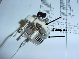 ![]() The jumper underneath provides a convenient soldering point on top of the APC. Experiment with the value needed for the padder capacitor by spot soldering it in place on top and then after the correct value is determined solder it permanently underneath. |