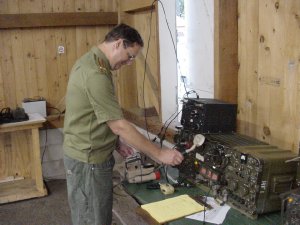 photo KW1I Gene AD3F does a show and tell. Gene won the award for passing Studebakers resturant the most times in his search for the Friday night dinner. |