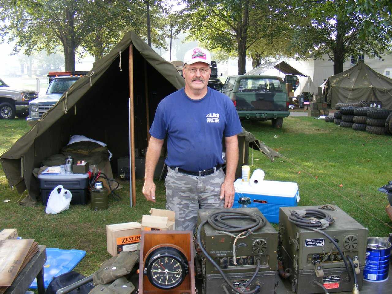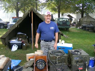 ![]() "My special today is SCR-522 dynamotors" Dave, KB3ELD with his wares. Note his vintage camp in the background. |