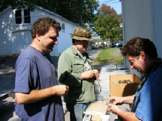 famous Ebay "Toober" on the left makes a quick sale at his table.